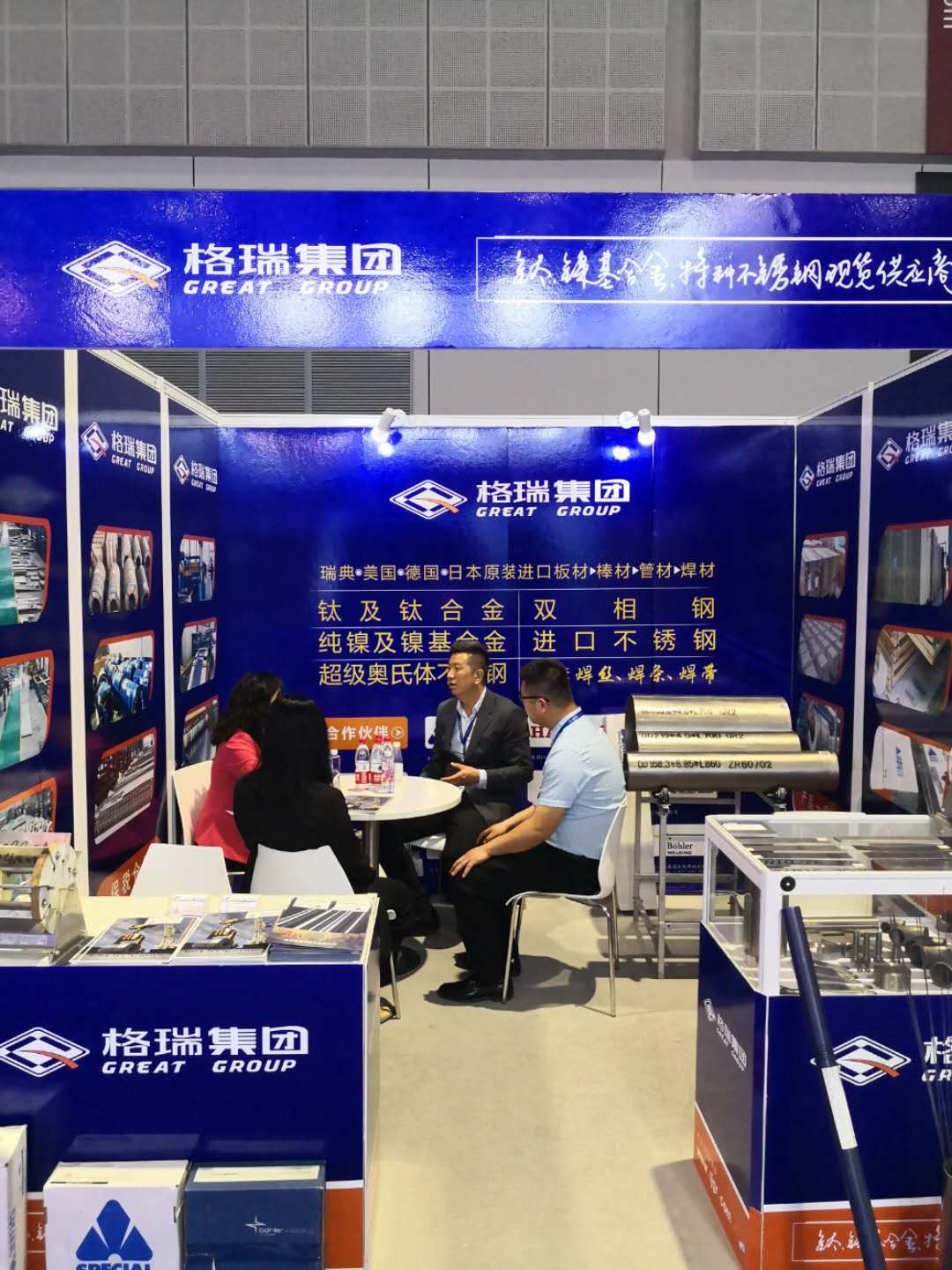 格瑞集團有幸受邀參加了此次化工行業(yè)盛會,此次展會格瑞集團既展示了飽滿豐富的現(xiàn)貨庫存(包括鈦及鈦合金、鎳及鎳基合金、超級不銹鋼及配套焊材等),還著重展示了格瑞集團特材加工中心的先進設備和能提供的相關服務。